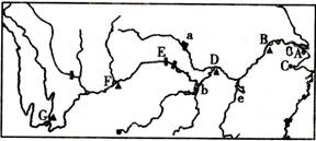 (2)长江中下游洪水有三个主要来源:宜昌以上的干支流,b,_____________湖和e 、_____________湖两大水系,北面的支流a、_____________。