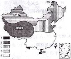 23.读我国主要气候类型分布示意图及各自气温曲线和降水量的柱状图,完成下列要求:(共