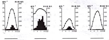 (2)读下列四幅气温曲线图与降水量的柱状图,请把图