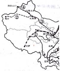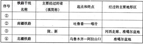 24.读我国西部地区部分铁路干线分布图(如下图),完成下列要求:(17分)