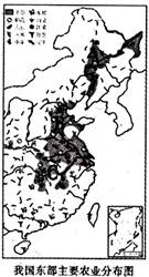 25.读我国东部地区主要农业分布图(如右图),完成下列要求:(15分)