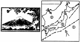 (1)图中远处的山是_______,从形成来看,它是一座_______;近处的花是______,它是日本的国花。