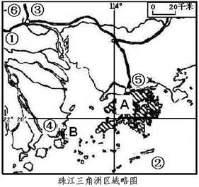 123.读我国“珠江三角洲区域略图”,回答:(10分)