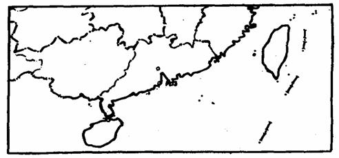 将下列地理名称前的数码填入右图中适当的位置:(4分) ①琼州海峡;②台湾海峡;③雷州半岛