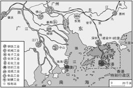 (1)图一所示地区是我国以轻工业为主的综合性工业基地珠江三角洲,充分利用其发展经济的有利条件,大力引进外资及先进技术设备,大力发展了 经济,该地区与港澳地区的合作以“ ”为基本模式。
