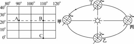 (1)A、B、C三点中,一年中太阳直射两次的是_______点。