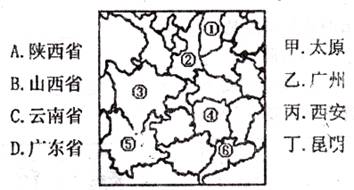 将下列省区、图6中序号及其省级行政中心相关组合:(8分)