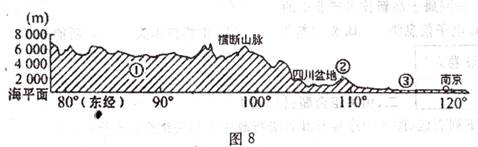 2.读图8“我国北纬32。的地形剖面图”,回答下列问题:(5分)