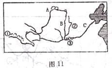 (2)A、B、C三河段中,易发生凌汛的是_______________段。