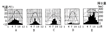 27.读五个城市气温变化曲线和降水柱状图,回答:(20分)