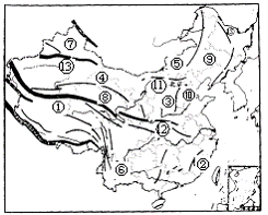 ⑹图中标了数码的山脉中,大致呈东西走向的有 。