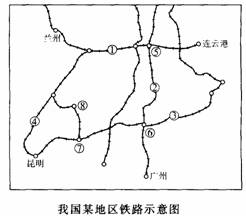 1.读“我国某地区铁路示意图”,完成下列各题: