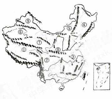 ⑴图中号码代表的季风区和非季风区分界线上的山脉名称