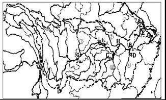 C、由东南向西南逐渐减少 D、由东南沿海向西北内陆逐渐减少
