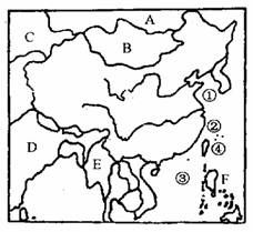 (1)填出图中数字所代表的我国邻海、岛屿名称