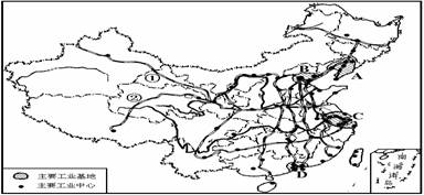 (1)填写图中字母所代表的工业基地名称。A B C D 。