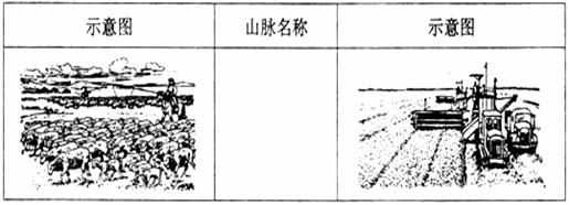 (4)下表中两种生产活动分布于左图中某山脉两侧,填写这座山脉的名称。(2分)