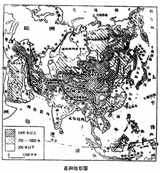 (1)依据图例,说明亚洲地势是___________高,___________低。