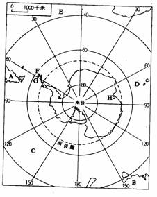 ⑵我国的南极考察站(G、长城站,H、中山站),位于南极圈以北的是 站,位于南极圈以内的是 站。