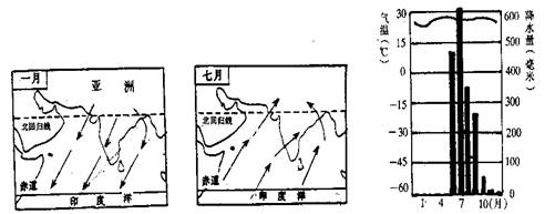 (2)▁▁▁▁▁▁季风给南亚带来了大量降水,但有的年份来得晚,或退得早,或是风力太弱,容易造成▁▁▁▁▁▁灾;有的年份来得早,或退得晚,或是风力太强,容易造成▁▁▁▁▁▁灾,影 响南亚的农业生产。