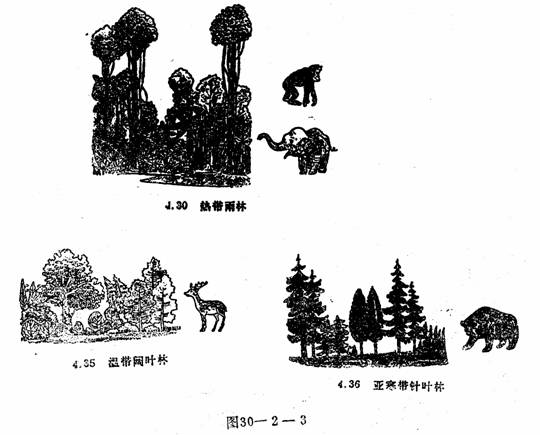 3、读图30-2-3写出下列三幅景观图片中,所代表的自然景观差异