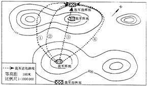 8、我军阵地若想攻打敌军指挥部,最平坦的行军路线是