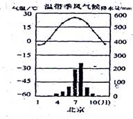 读“温带季风气候”坐标图,