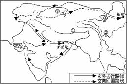 《西游记》中描写的唐僧,其人物创作的原型是中国唐代的高僧玄奘。玄奘于627年8月从长安(西安)出发,长途跋涉5万余里,到达天竺国佛教最高学府那兰陀寺学习,645年2月,回到长安(西安)。据此并读图 “玄奘西天取经路线图”,完成13-14题。