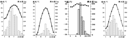 15.下列四幅图分别反映了不同地区的气温、降水情况,其中代表我国北方地区的是