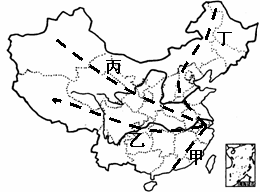读右图中甲乙丙丁四条路线所经过的地区,回答16-17题。