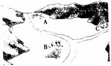 (3)根据以上知识,分析下图中的A、B、C三个聚落,最有可能发展成为城市的是
