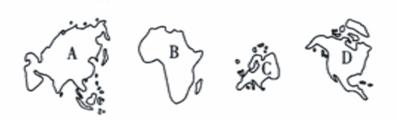 9、读大洲轮廓图可知,A、B两洲的分界线是 ( )