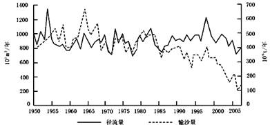 C.1950-2005年输沙量的变化率高于径流量的变化率