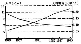 39.读图7,下列叙述中能正确反映我国20世纪50年代以来人口和人均耕地数量变化特点的有: