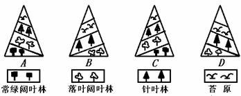 以下四幅山地垂直带谱图中,位于北半球亚热带山地的是 ( )
