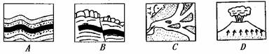 下列各图反映的地理现象中,主要由外力作用形成的是 ( )
