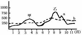 A.只有一次汛期甲 B.只会出现一次汛期乙