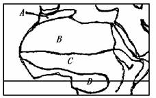 (4)B自然带横贯非洲大陆的原因,除了常年受_________________气压控制外,西部沿海受 影响,东部 ,也起了重要作用。