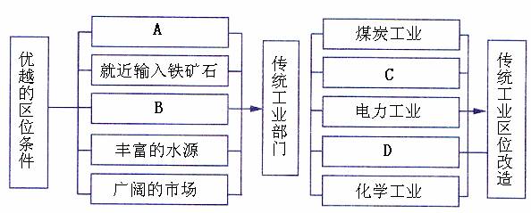 (3)除鲁尔区外,著名的传统工业区还有英国的_______工业区、美国的__________工业区等。(2分)