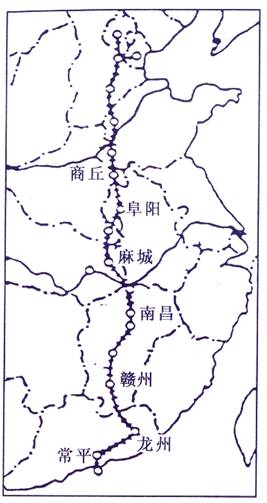 33、读“京九铁路示意图”,完成下列要求:(10分)