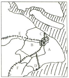 A.与子午线成30°-60°夹角 B.呈东西方向