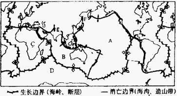 (3)E处高大山脉是由于______________而形成的。F处多火山、地震的原因是____ __。
