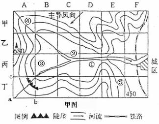 25. 读图已知甲图中所示地区位于我国湿润区某地,ab=ac=4Km,回答以下问题: