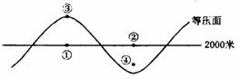意图,图 中①至④点的气压,由高到