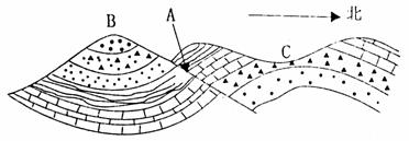⑵从岩层形态上看,B处为_______________构造,C处为____________________构造。