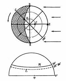 (3)A、B、C、D中正值日出是 点,正值日落 点。