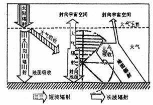 44.读“大气对地面的保温作用图”,回答问题:(8分)