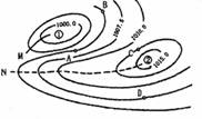 45.读“北半球某地海平面等压线分布图”,回答问题:(9分)