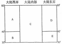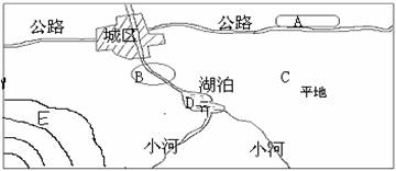 3、如右图(1),要在城镇周围安排小麦、奶牛、花卉、养鱼、果树,则A、B、C、D、E五地应分别安排( )