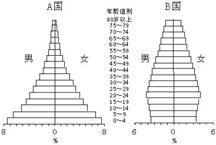 22.根据“A、B两国的人口金字塔图”,回答下面的问题。